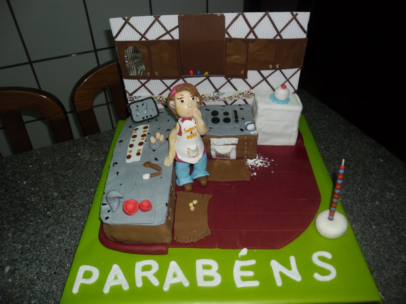 O meu aniversário já lá vai, mas não queria deixar de postar o meu bolinho que tanto trabalho deu a fazer...uma réplica de uma parte da minha cozinha.